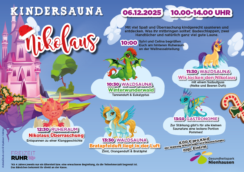 Ab 4 Jahren – mit nur je einem Elternteil /erwachsene Begleitung, da die Teilnehmerzahl begrenzt ist.