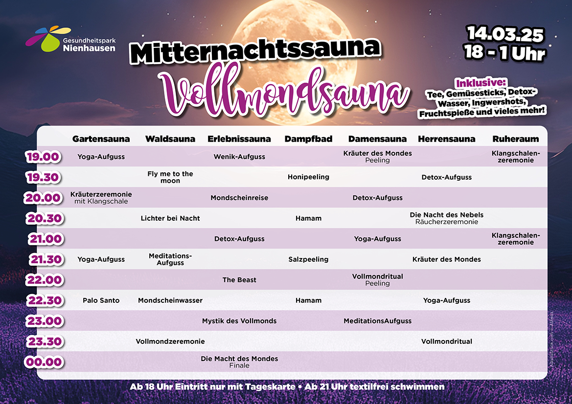 Freut euch auf unser Sauna-Special von Frauen für Frauen, denn unsere Damenmannschaft bietet Euch ein ganz besonderes Rahmenprogramm rund um Schönheit, Wellness und Entspannung. Der männerfreie Abend beginnt mit einem Sektempfang und auch die Gastronomie bietet bis 24 Uhr eine besondere Karte sowie fruchtige Cocktails. Das Event für die besten Freundinnen!