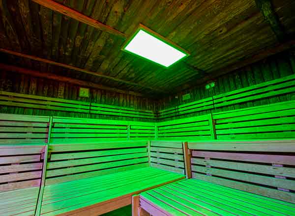 Vollkommene Entspannung findest Du bei angenehmer Hitze sowie sanfter Musik und dezenter Beleuchtung.
