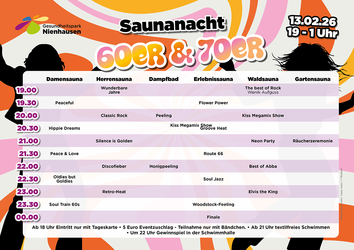 Eine richtige Institution sind die beliebten Waldsaunaabende bei Saunafans geworden. Jeden Monat neu inspiriert mit den beliebten Wenik Aufgüssen. Immer von 19.00-22.00 Uhr zum regulären Eintrittspreis.
